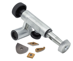 - Une nouvelle vis de blocage vous permet maintenant de verrouiller le mouvement de pivotement du dispositif. Grâce à cette fonctionnalité, il est plus facile d’obtenir un contrôle total lors de l’affutage des gouges à sculpter, comme les Burins. La nouvelle vis de blocage permet un affutage 100% plat avec le MB-100 et les meules diamant Tormek.