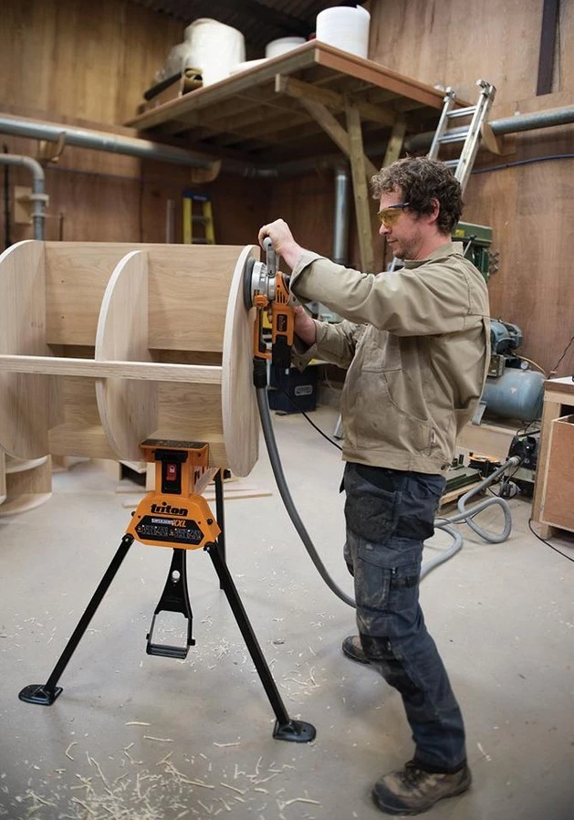 - Le trépied extra-large optimise la stabilité des grandes pièces de travail.